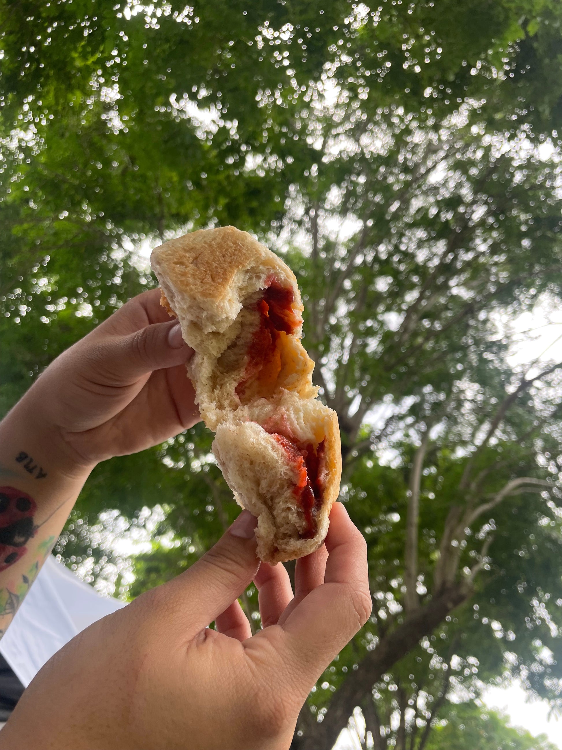 Ingredientes: harina,agua,aceite, azúcar, sal, levadura, queso crema y guayaba.