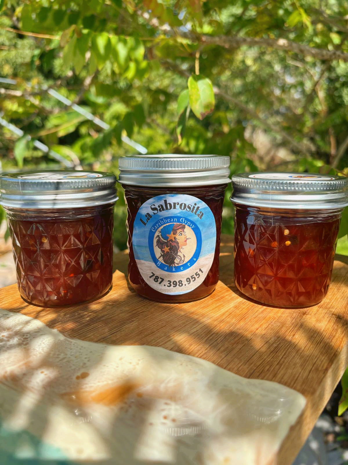 Mermelada de guayaba local con ajíes picantes de nuestro jardín. Muy versátil para darle el toquecito picante a tus desayunos pero también para realzar tus creaciones al BBQ y esos aperitivos de queso frito que tanto te gusta. Empacada en envase de cristal reusable tamaño 6 onzas.