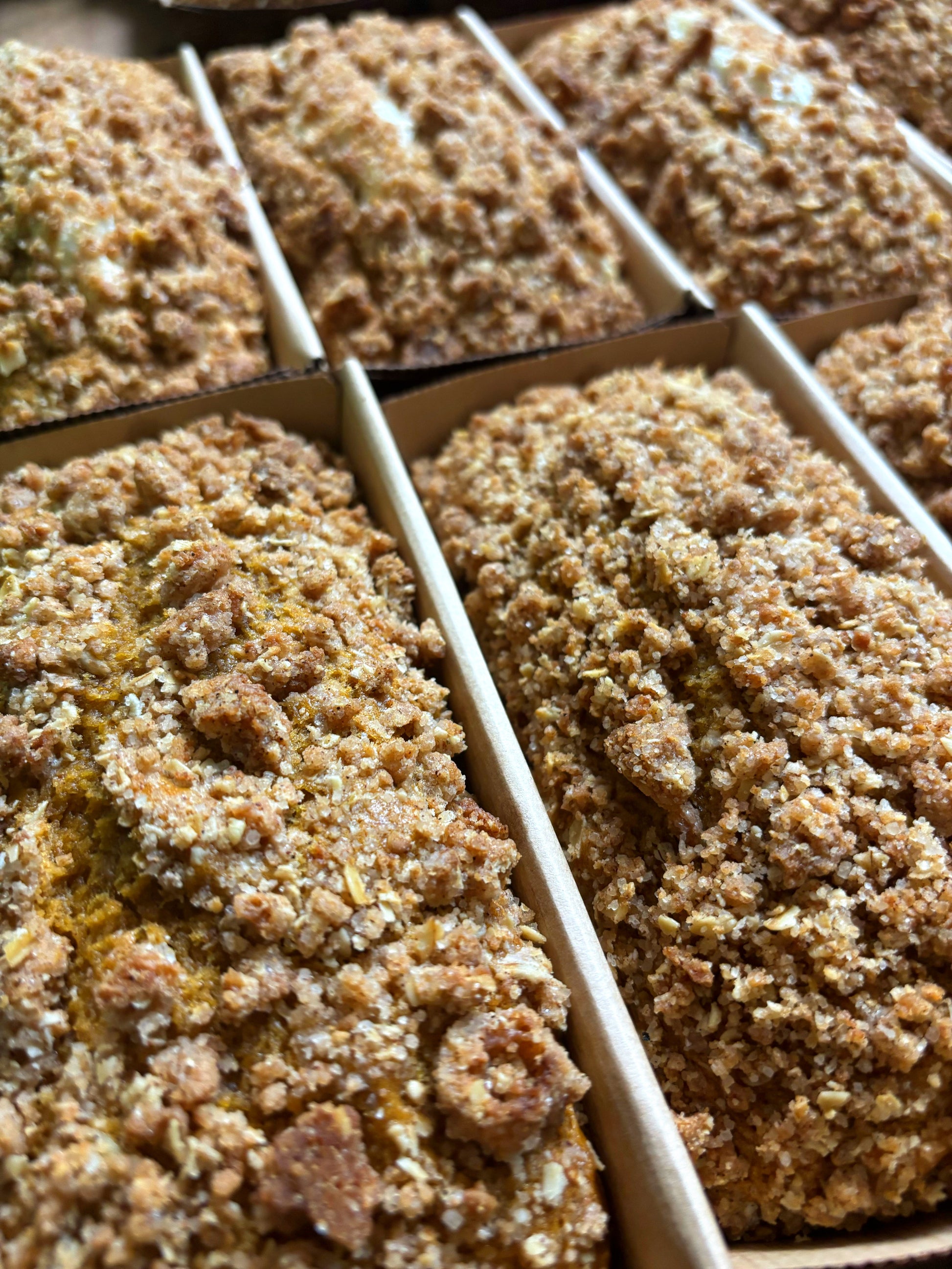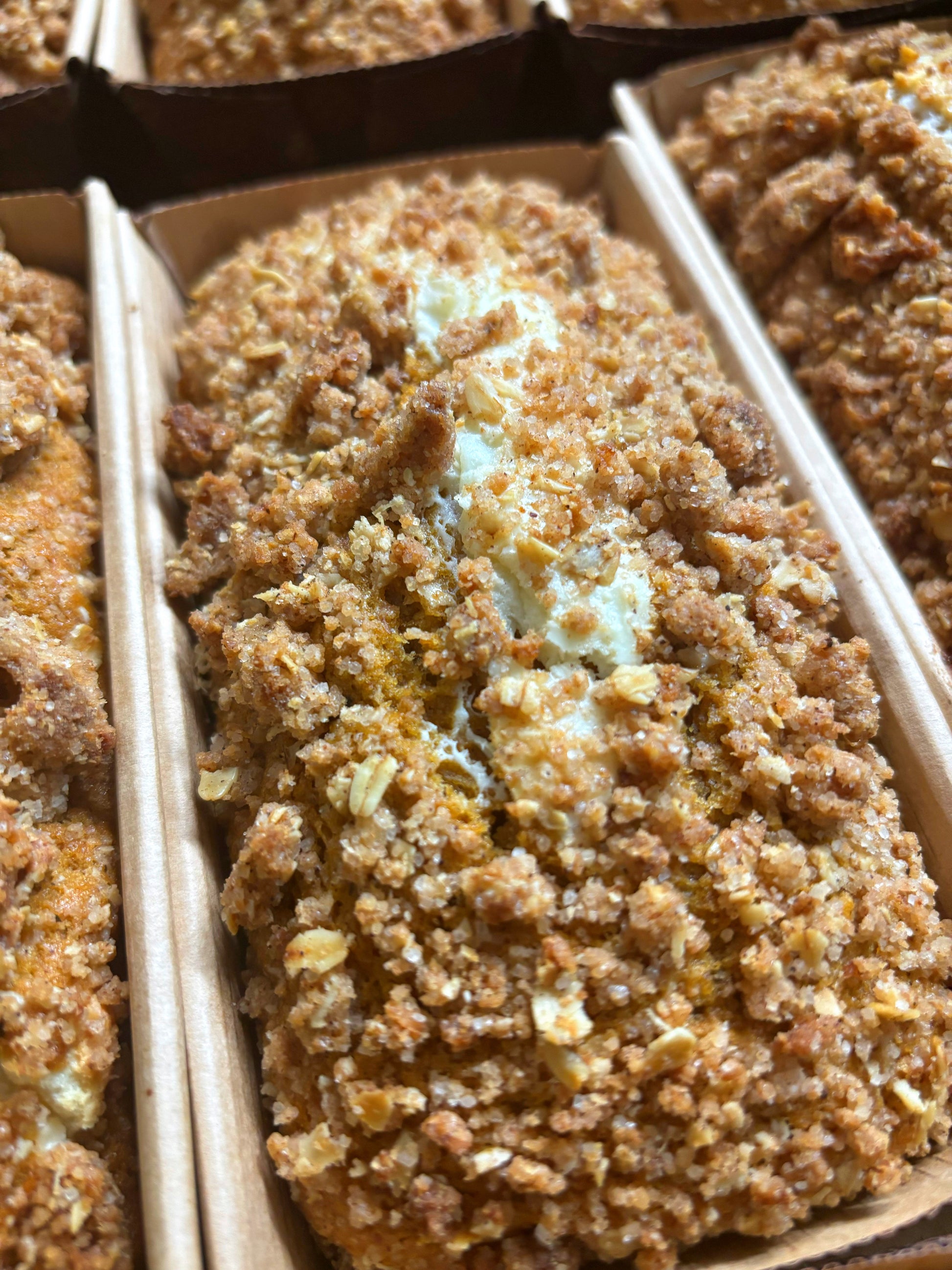 Un clásico en nuestro menú todo el año. Calabaza local al horno, pumpkin spice hecho en casa para mejor sabor, enriquecido con linaza para mayor proteína y fibra, lo convierten en un gustito sabrosaludable 😉 Al igual que nuestro pan de guineo es un bizcocho dulcesito sin excesos y con suficiente fibra y proteínas para hacerlo una excelente opción a base de plantas. Hogaza sin rebanar de 14 oz.
